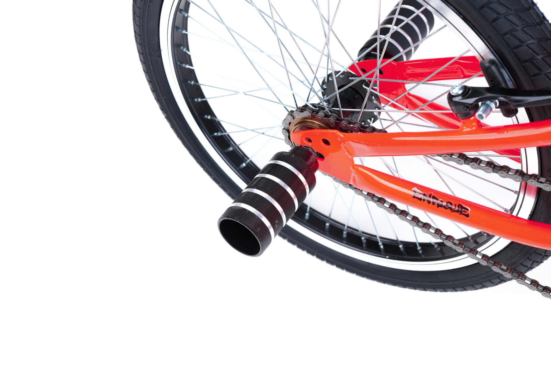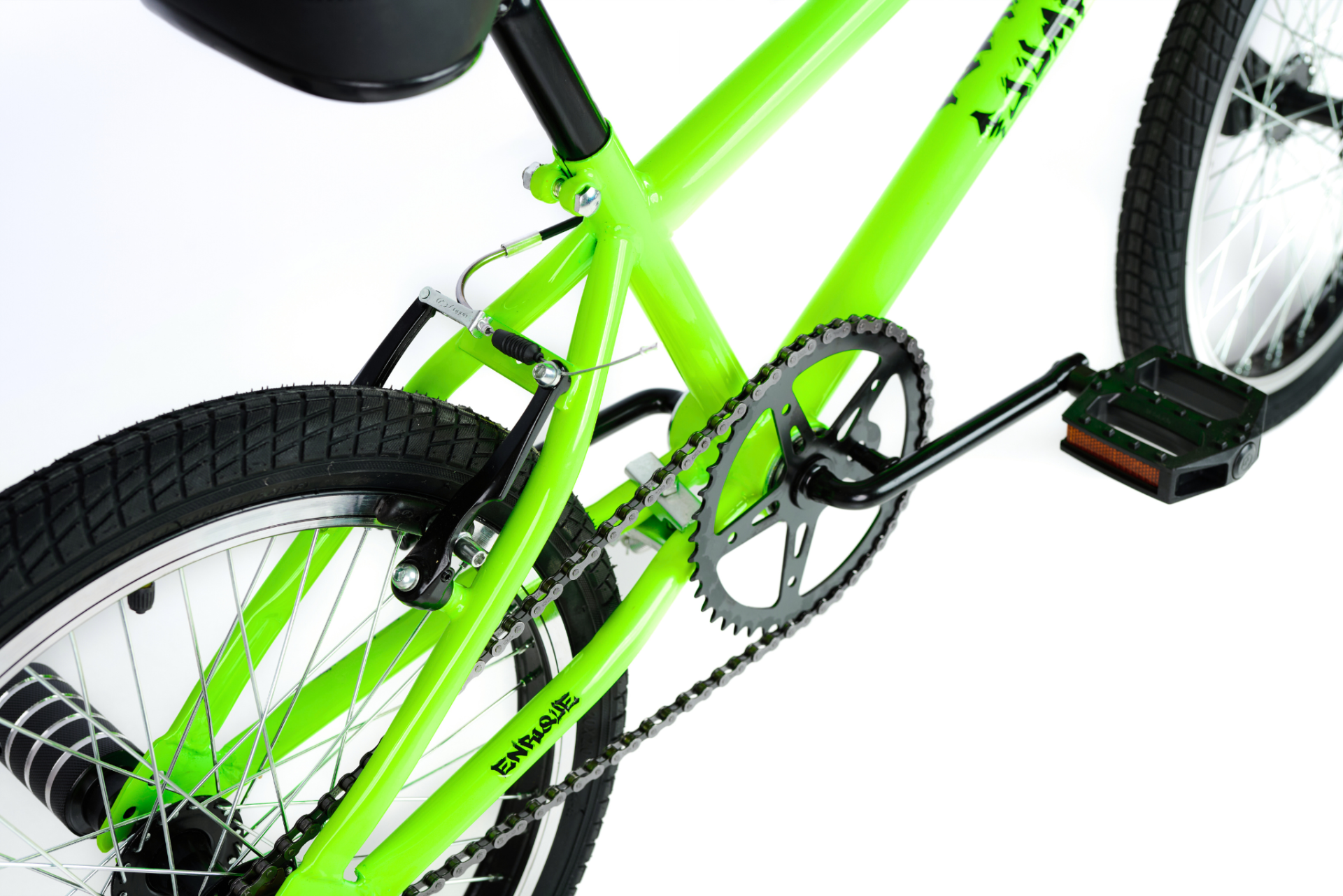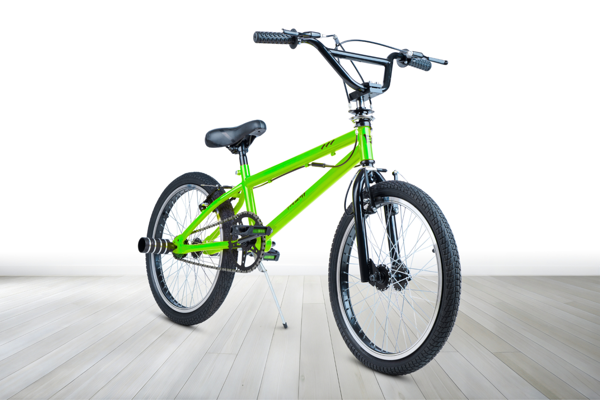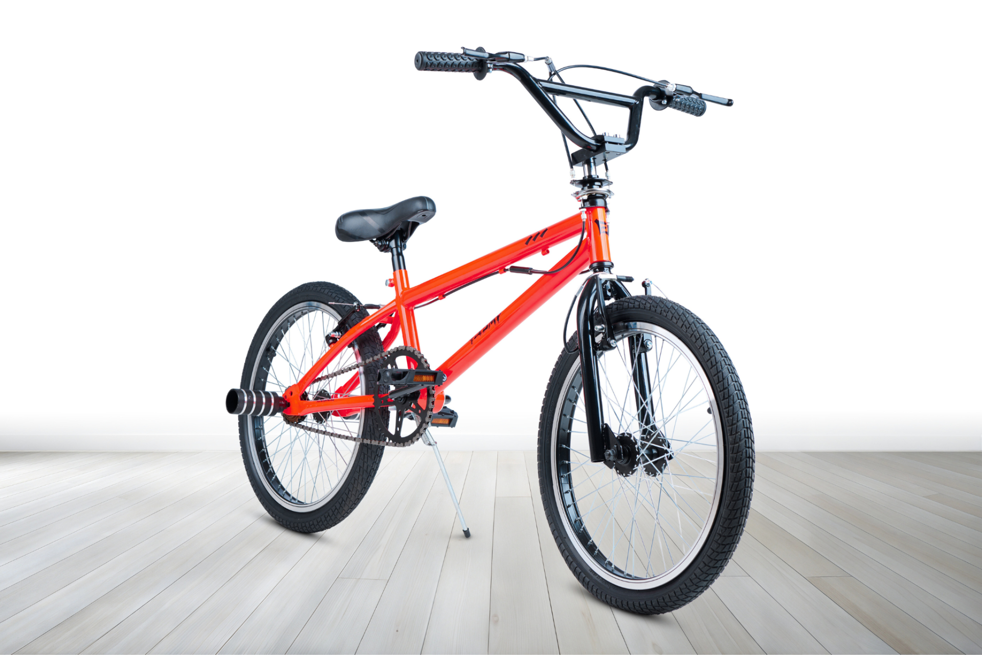 Equipada con manubrio BMX, stem de acero, llantas de aluminio perfil rectificado, mazas de aluminio 48H y frenos V-Brake, ofrece un desempeño sólido y seguro.
